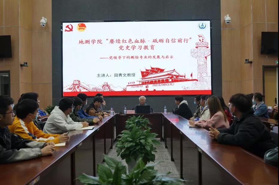 邀请退休教师田青文教授为无码av影片测绘科学系全体青马班学生、测绘科学系学生党支部学生和毕业班学生代表作了“赓续红色血脉•砥砺自信前行”为主题的党史学习教育专题讲座,结合自身经历向同学们介绍了党领导下的测绘专业的发展与启示。无码av影片