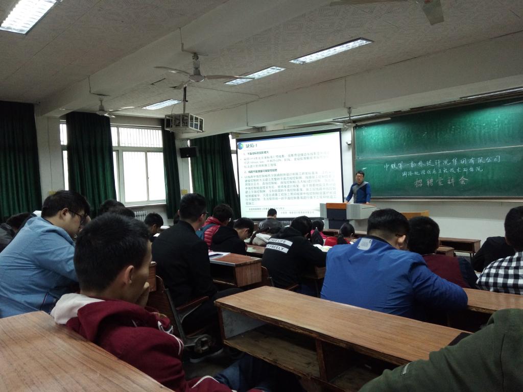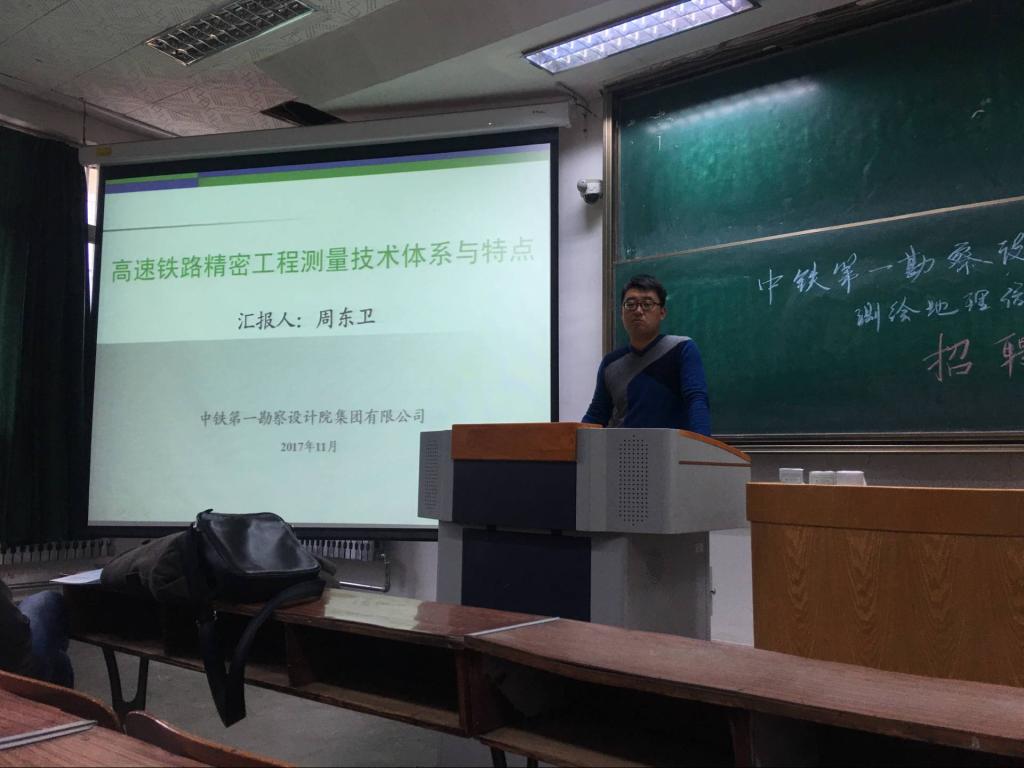 首先,中铁一院测研院工程测绘所所长周东卫从中铁一院测研院工程测绘所的业务范围、工作业绩、发展定位、人才需求等几个方面对公司做了详细的介绍。随后,夏朝龙副所长对测绘工程相关专业在铁路维修中的应用以及公司的人才层次、人才培养、人员管理等方面进行了讲解。最后,中铁一院测研院航空测绘所所长方诗明介绍了单位摄影测量内业工作特点。指导会后三位专家与同学们进行了交流与沟通,强调要明确自己的就业方向,表示非常欢迎同学们到公司参观,进一步了解中铁一院测研院以及我国高铁地铁的建设成果。