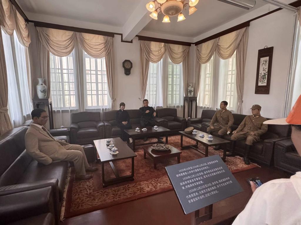 张学良公馆是西安事变的重要历史见证地。活动中,全体成员在讲解员的带领下,依次参观了公馆的会议室、起居室、展厅等区域。泛黄的照片、珍贵的手稿、复原的陈设,生动再现了张学良、杨虎城两位将军在民族危亡关头毅然发动“兵谏”、促成抗日民族统一战线建立的壮举。同学们凝视着一份1936年的电报原件,感慨道:“这些实物让我们仿佛穿越时空,真切感受到先辈们‘苟利国家生死以’的赤子之心。”