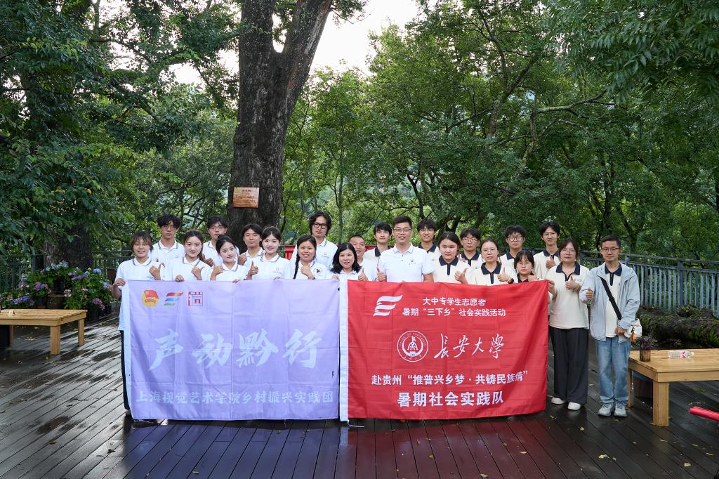在驻村第一书记张俊的带领下,实践队来到了普梯古寨。展文旅融合促进乡村振兴调研及普通话推广实践活动。实践队通过走访当地村民、调研文旅资源、旅游发展现状及面临的机遇与挑战,为古寨文旅融合发展收集第一手资料;并通过趣味教学、游戏互动等形式开展推广普通话实践,助力乡村文化振兴。期间,实践队与同在此地开展实践的上海视觉艺术无码av影片团队举行座谈交流,双方围绕乡村文化传承、铸牢中华民族共同体意识、大学生实践助力乡村振兴等话题深入探讨,分享实践经验与感悟。实践队还受邀参与上海视觉艺术无码av影片团队策划的“村晚”联欢晚会,队员们通过文艺表演与村民互动,展现青春风采,丰富了村寨文化生活,也让实践活动更接地气、更具温度。