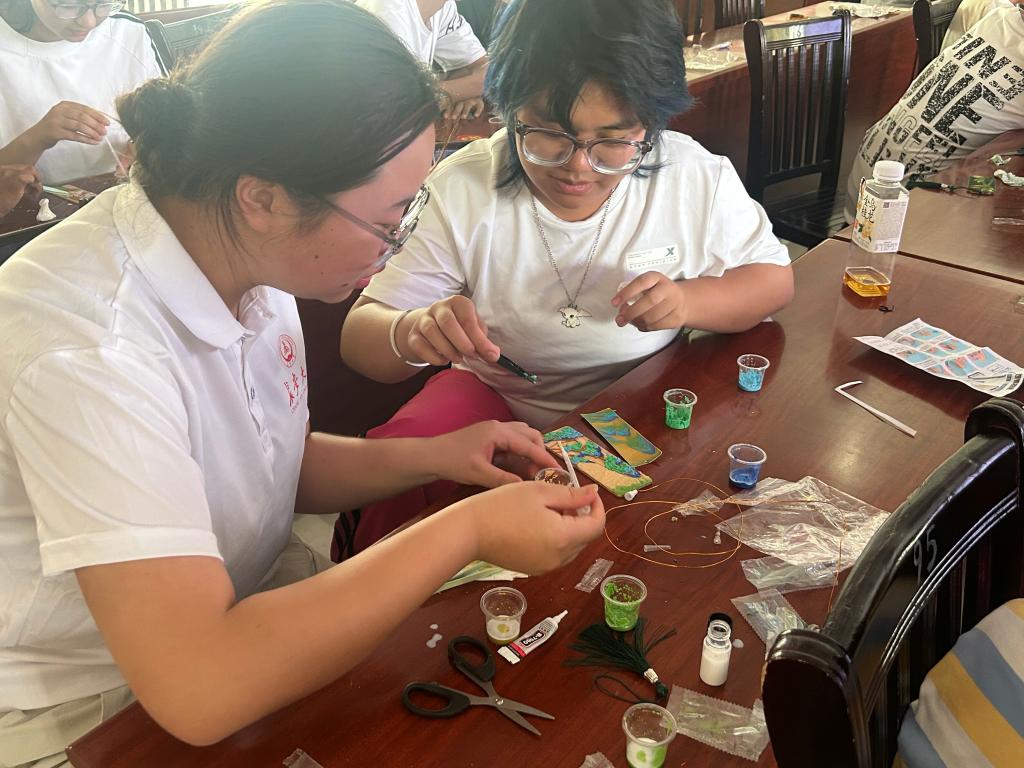 赴新疆焉耆“丝路育才传薪火·推普同心绘华章”暑期社会实践队于2025年7月16日,在焉耆县第一中学,成功举办了以“丝绸之路”为主题的非物质文化遗产“掐丝珐琅”技艺体验活动。焉耆作为古丝绸之路上的重要节点,曾见证东西方文明交融互鉴,承载着中华民族多元一体格局的历史记忆。此次活动,旨在依托丝路文化纽带,通过传统工艺的实践教学,让青少年亲身体验掐丝珐琅这项经丝绸之路传入并本土化的艺术瑰宝,增强对中华优秀传统文化的认同感与自豪感,深刻理解各民族交往交流交融的历史传承,进一步铸牢中华民族共同体意识。