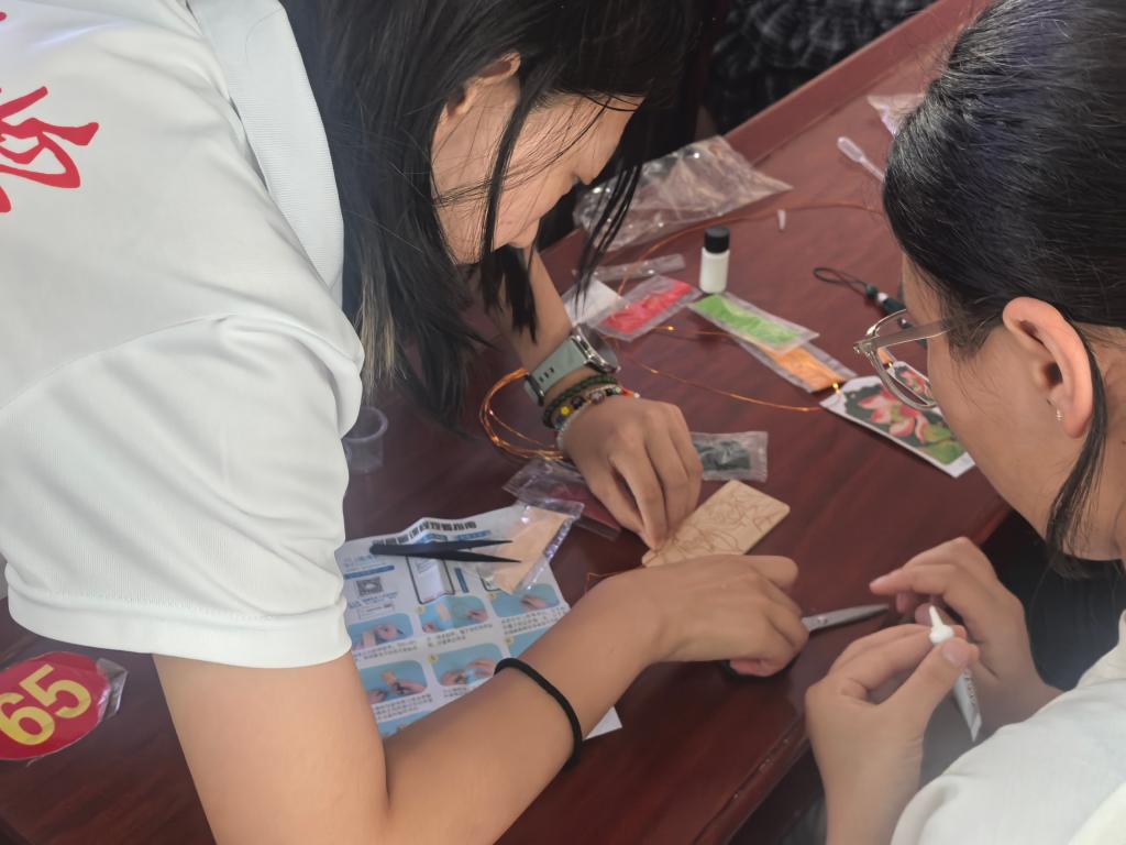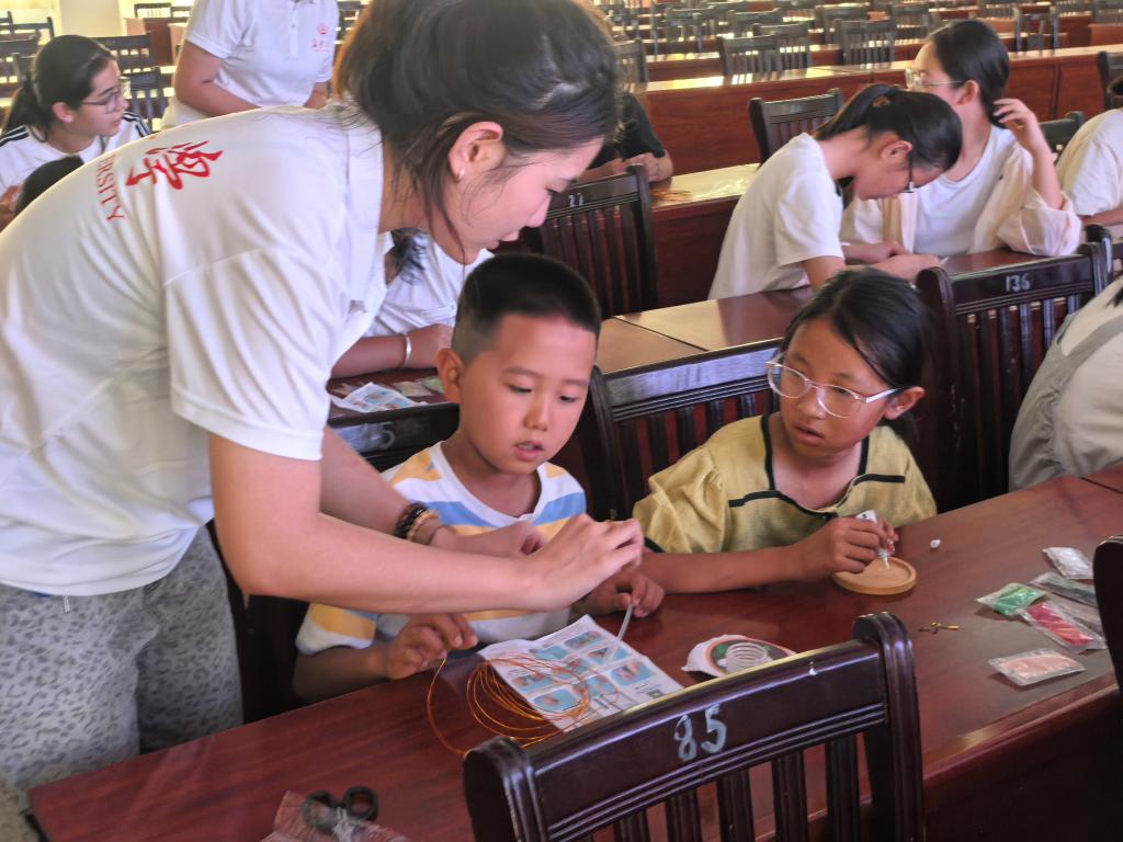 实践队员指导学生制作掐丝珐琅