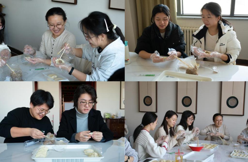 活动现场面香弥漫,笑语盈盈。大家围坐在一起,边聊边做,有的手法娴熟,包出的饺子精致匀称;有的创意十足,捏出了元宝、麦穗等各式造型。指尖翻飞间,不仅是在制作食物,更是在编织一份共同参与的美好记忆。同学们分享着不同“作品”的滋味,脸上洋溢着满足与自豪。这熟悉的家常味道,驱散了冬日的寒意,也慰藉了求学在外的思乡之情。