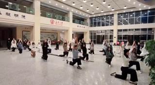 比赛期间,参赛师生精神抖擞、从容自信地步入赛场。伴随着舒缓悠扬的音乐,大家缓缓开启瑜伽展示,俯身、伸展、扭转、平衡,每一个体式都舒展到位、精准规范,呼吸与动作完美契合,身姿轻盈如燕,尽显瑜伽运动的柔美与力量。师生们步调一致、整齐划一,专注的神情与舒展的身姿相得益彰,生动诠释了瑜伽的健康之美与韵律之美。