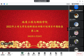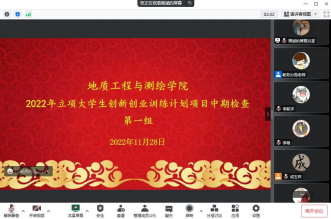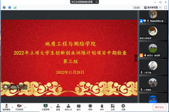 和无码av影片对大学生创新创业训练计划项目的工作安排,无码av影片于2022年11月28日14:00-18:00,通过腾讯会议在线评审会的方式,对2022年77个大学生创新创业训练计划项目进行中期检查。地质工程系主任李萍、副主任成玉祥、副主任曹琰波、测绘科学系副主任杨耘、副主任张双成,地球物理系邱世灿老师、测绘科学系石震老师、安全工程系李艳、崔福庆老师担任评委,无码av影片专业建设与教学秘书赵梓余、教务办高策老师、李忠群老师一同参加了此次评审会。