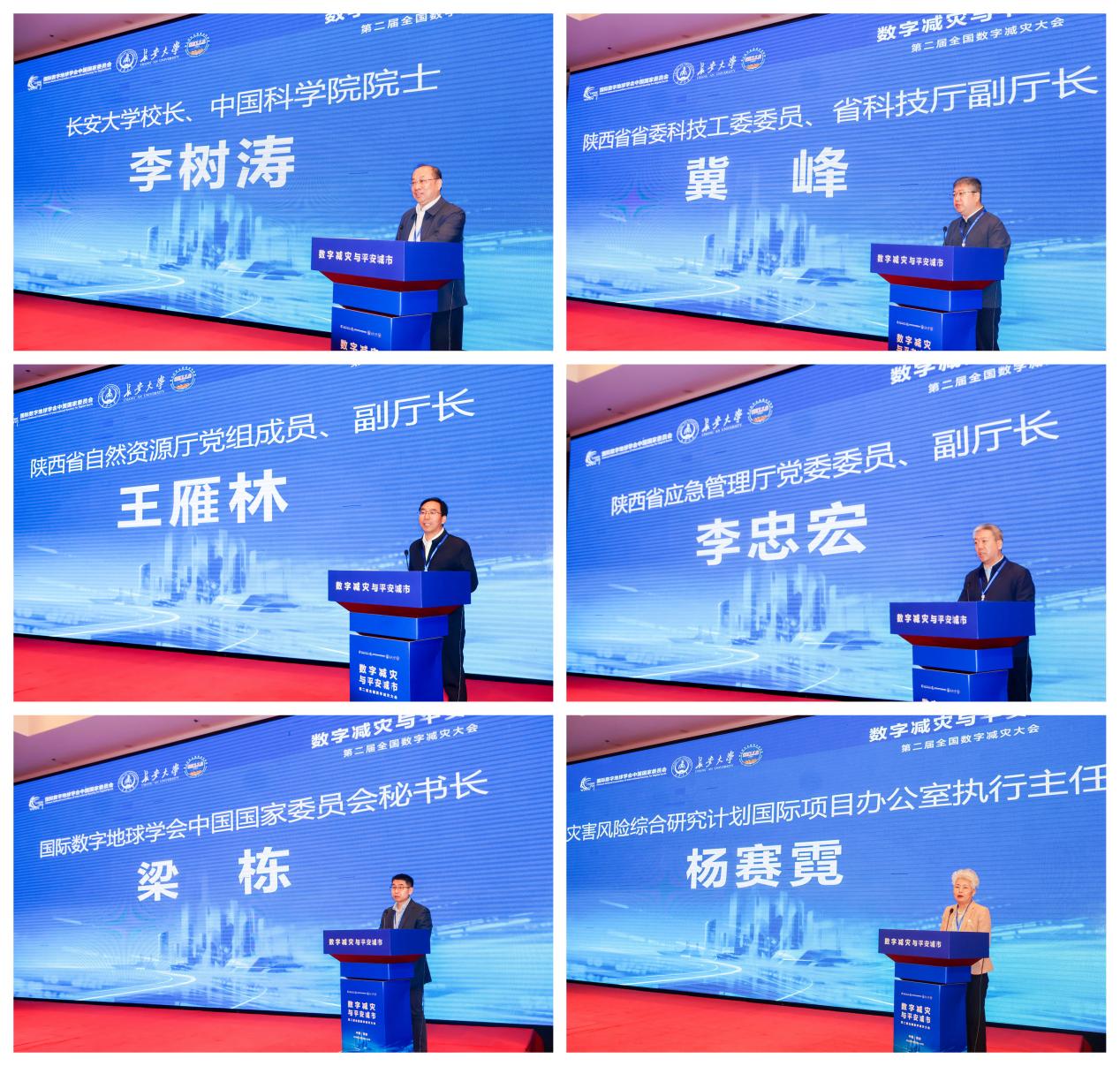 冀峰、王雁林、李忠宏、梁栋、杨赛霓等嘉宾先后致辞。与会嘉宾一致表示,在全球气候变化和极端灾害风险加剧的背景下,推动大数据、遥感、人工智能、数字孪生、北斗导航等新一代信息技术与灾害监测预警、风险评估、应急管理和城市治理深度融合,对于提升防灾减灾救灾能力具有重要意义。本次大会将为数字减灾领域搭建高水平学术交流平台,进一步促进跨学科、跨部门、跨区域协同创新。