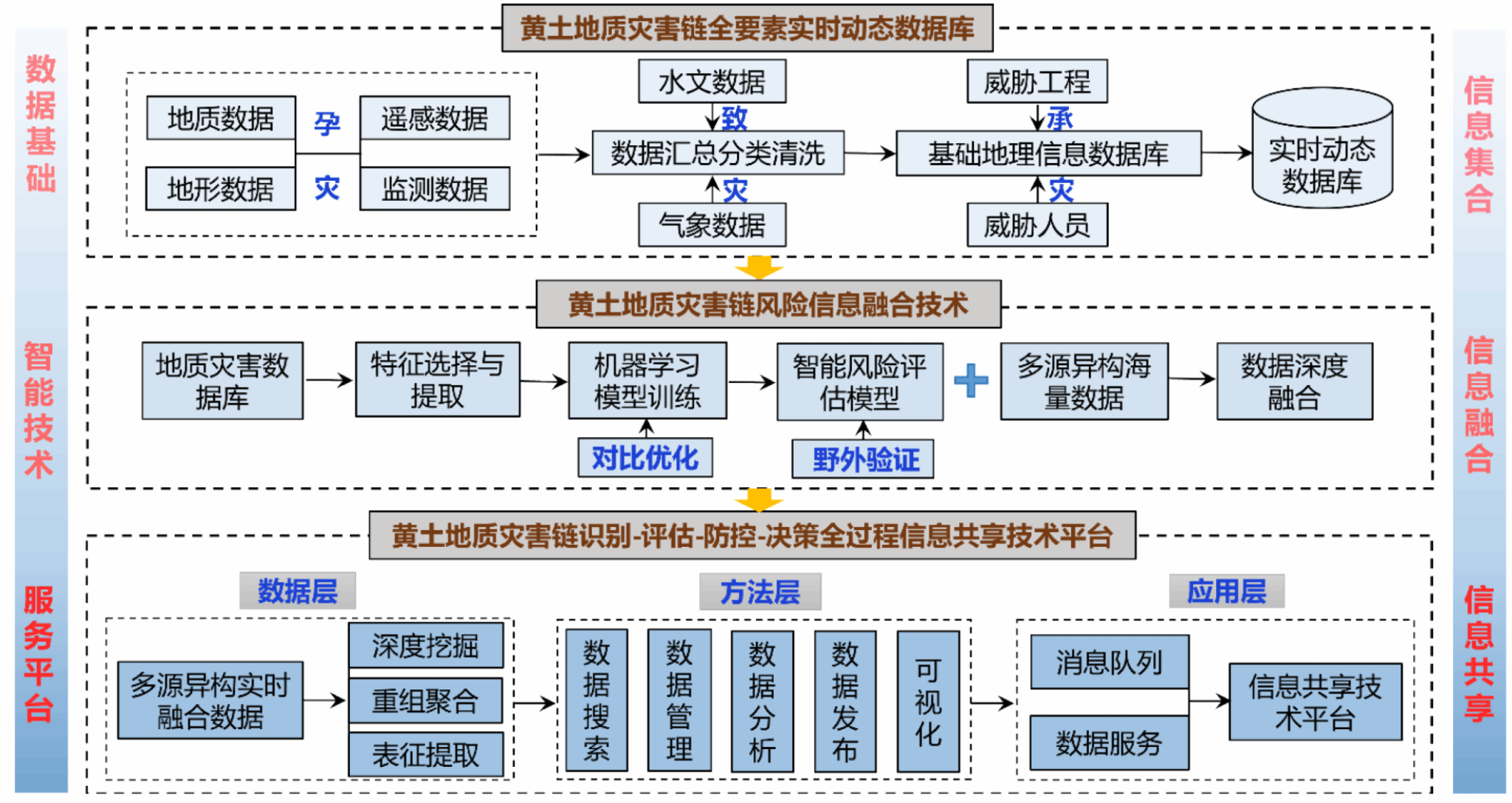 黄土高原地质灾害链风险识别—定量评估—韧性防控—智能决策全过程信息流转图